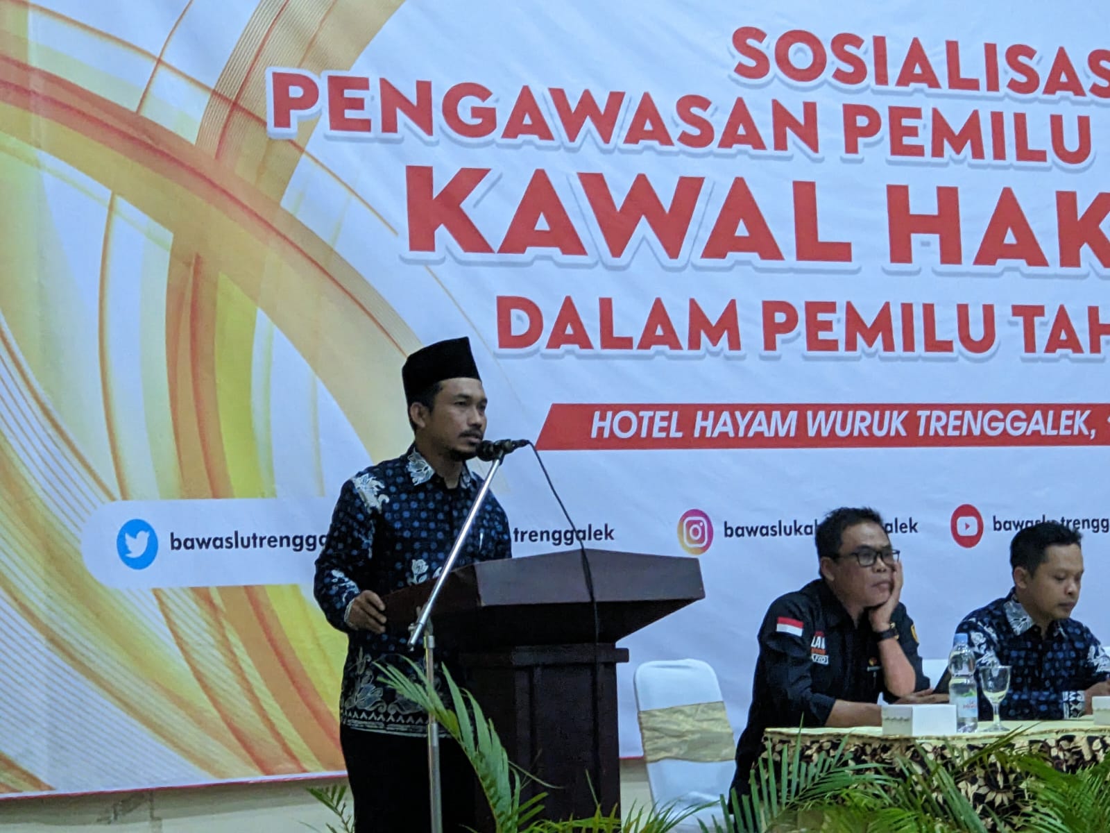 trenggalek.bawaslu.go.id - Bawaslu Kabupaten Trenggalek menggelar kegiatan Sosialisasi Pengawasan Partisipatif Kawal Hak Pilih dalam Pemilu Tahun 2024 yang bertempat di Hotel Hayam Wuruk dan mengundang Kepala Desa Se-Kabupaten Trenggalek serta Panwaslu Kecamatan Se-Kabupaten Trenggalek. (16/03/2023)