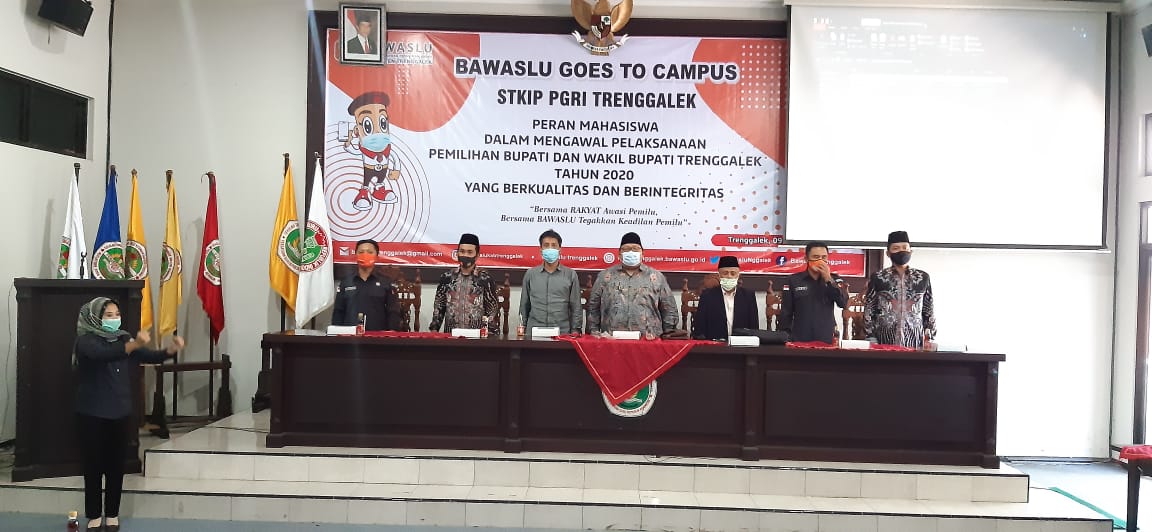 trenggalek.bawaslu.go.id- Badan Pengawas Pemilu Kabupaten Trenggalek mengadakan acara melibatkan mahasiswa, acara ini dihadiri oleh Ketua Bawaslu Provinsi Jawa Timur Moh.Amin, dengan Narasumber Dr. Moh. Muzakki acara dilaksanakan di Kampus STKIP PGRI Trenggalek, (9/12/2020).