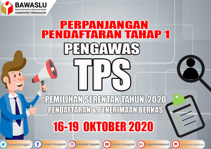 PENGUMUMAN PERPANJANGAN TAHAP 1 PENDAFTARAN CALON ANGGOTA PENGAWAS TPS DALAM PEMILIHAN GUBERNUR DAN WAKIL GUBERNUR, BUPATI DAN WAKIL BUPATI SERTA WALIKOTA DAN WAKIL WALIKOTA TAHUN 2020