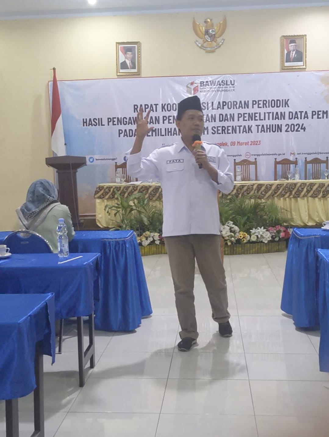 trenggalek.bawaslu.go.id - Badan Pengawas Pemilu Kabupaten Trenggalek menggelar kegiatan Rapat Koordinasi Pengawasan Pencocokan dan Penilitian Data Pemilih mengundang Panwaslu Kecamatan Se-Kabupaten Trenggalek di Hotel Hayam Wuruk (9/3/2023).