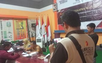 Bawaslu Kabupaten Trenggalek melakukan pengawasan terhadap klarifikasi tanggapan masyarakat terhadap keabsahan dokumen persyaratan partai politik calon peserta Pemilu Tahun 2024, di Kantor KPU Kabupaten Trenggalek, pada Sabtu (08/10/2022).