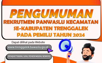 www.trenggalek.bawaslu.go.id -Badan Pengawas Pemilihan Umum (Bawaslu) Kabupaten Trenggalek memanggil putra/putri terbaik Trenggalek untuk bergabung menjadi Panitia Pengawas Pemilu Kecamatan (Panwaslu Kecamatan) Pemilu tahun 2024, dengan persyaratan sebagai berikut:
